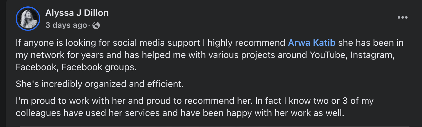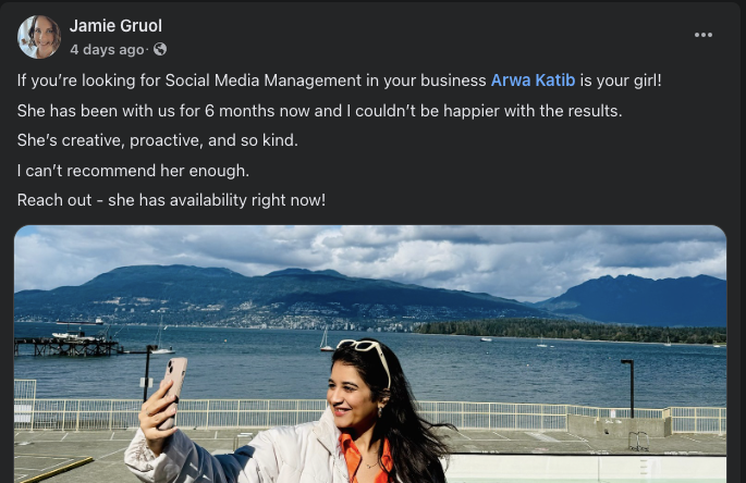 I’m Arwa Katib, a social media strategist specializing in content creation and social media management for founders and small businesses.